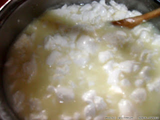 Το κατεβάζουμε από την φωτιά και το ρίχνουμε στην τσαντίλα μας μαζεύοντας τον ορό που έχει σε μια λεκάνη για να κάνουμε την μυζήθραμας.